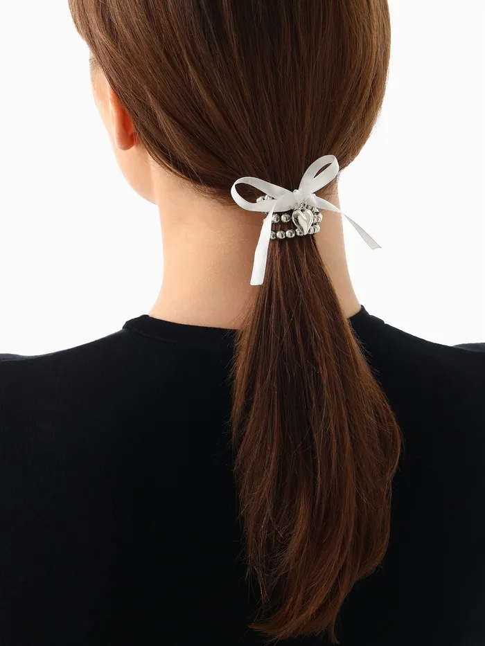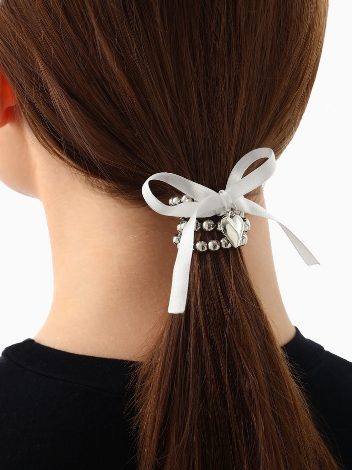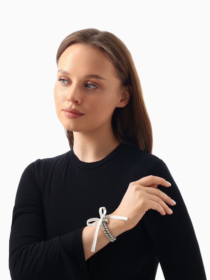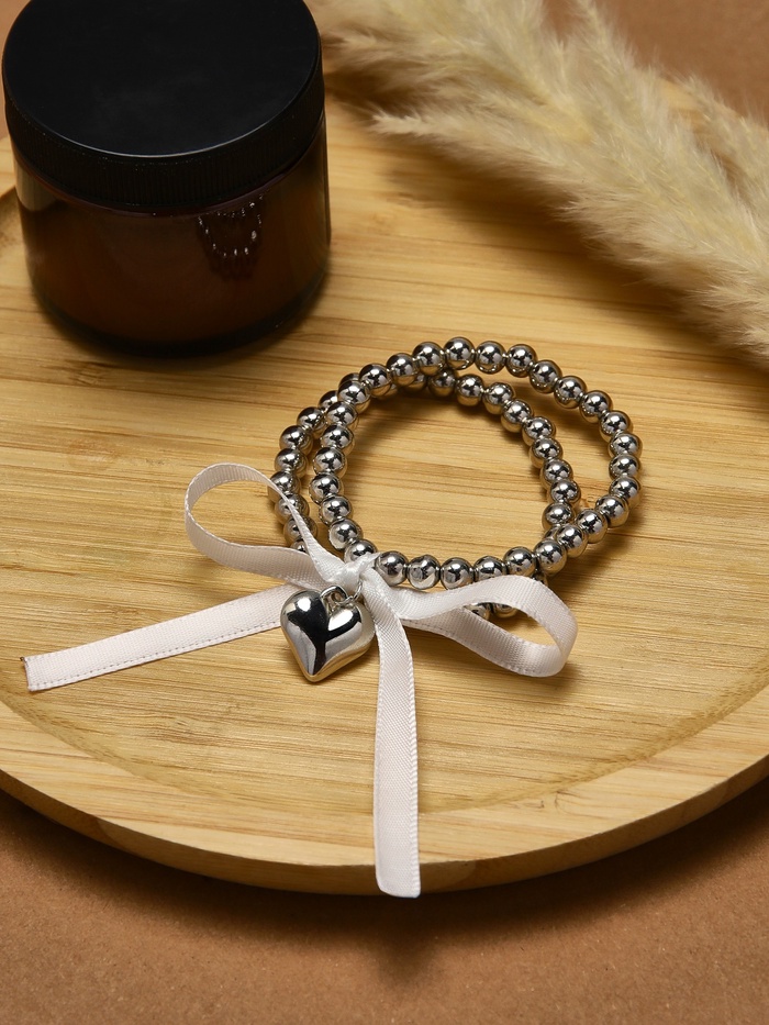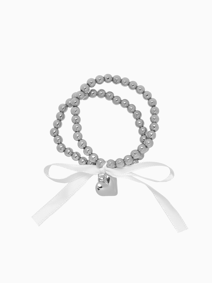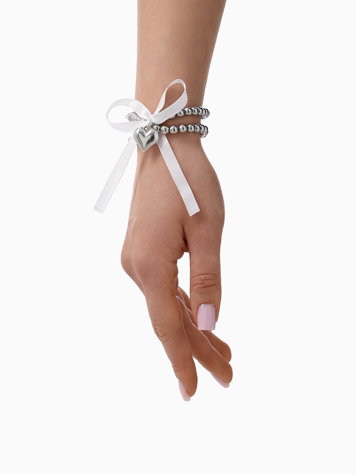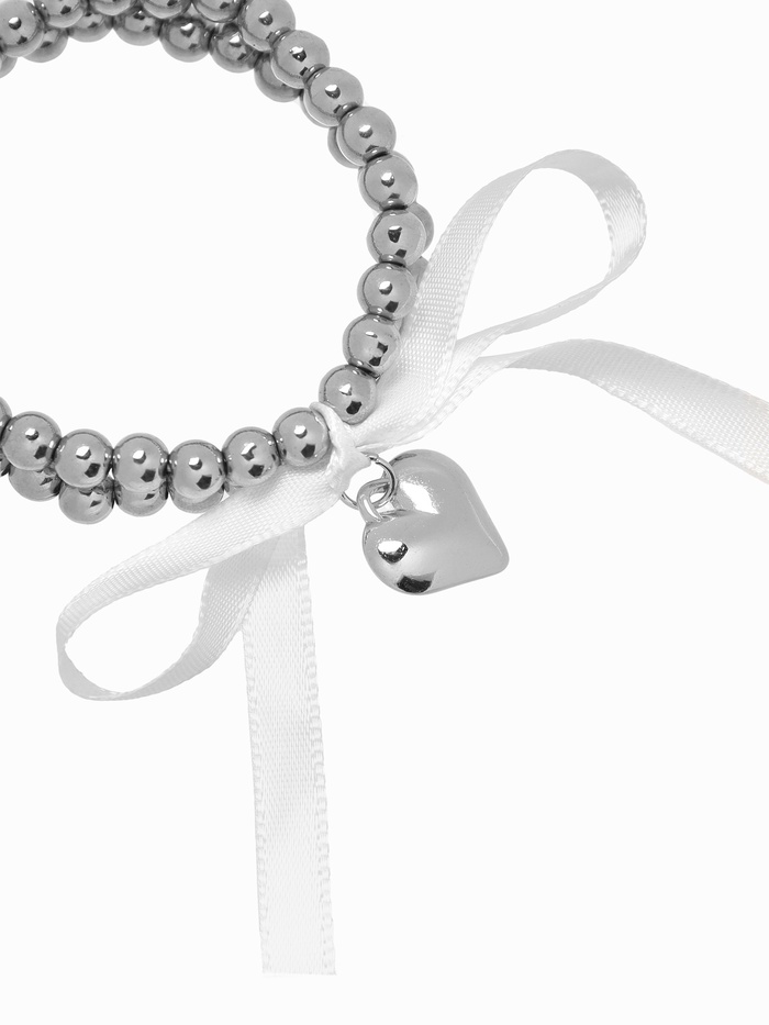 Браслет «Сердечко» на резинке, бантик, белый в серебре — Характеристики