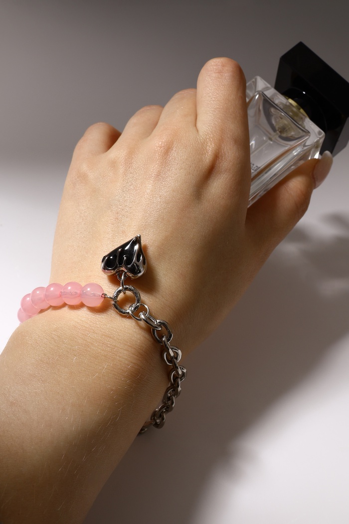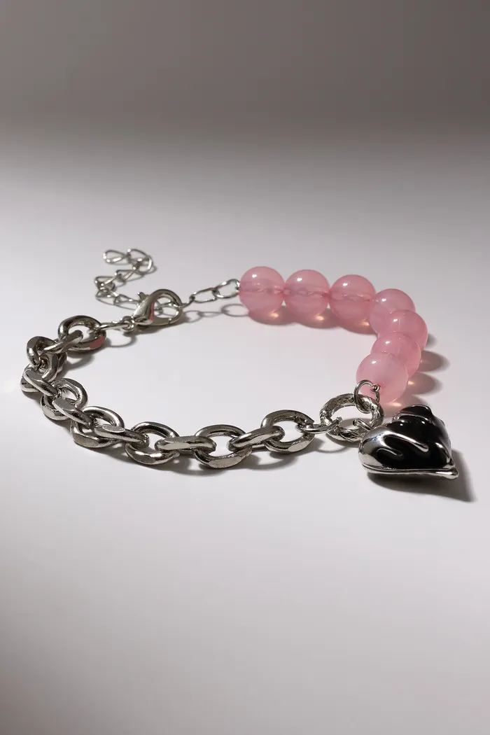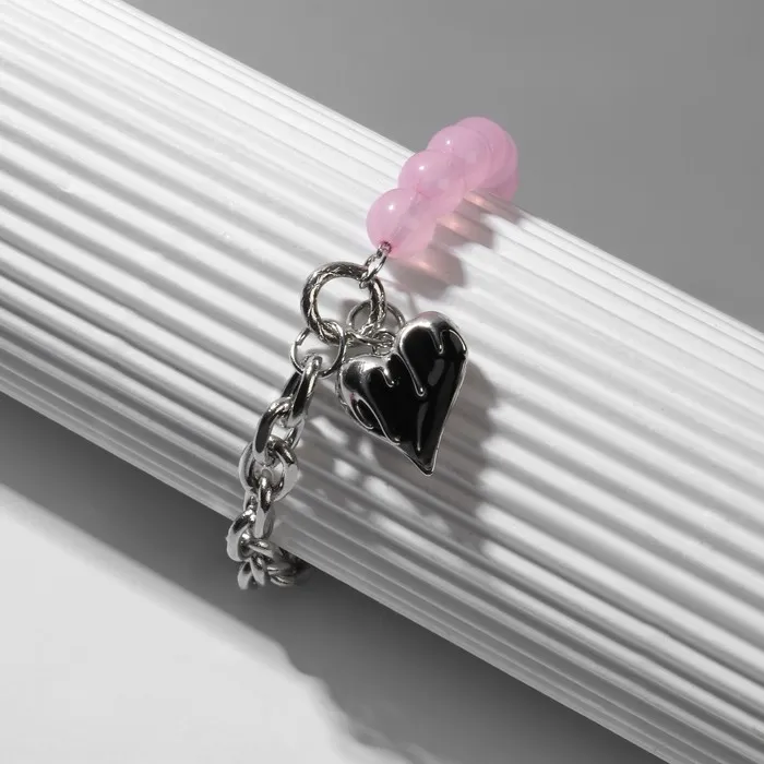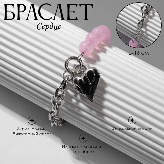 Браслет «Сердце» цепь, цвет чёрно-розовый в серебре, L=16 см — Характеристики