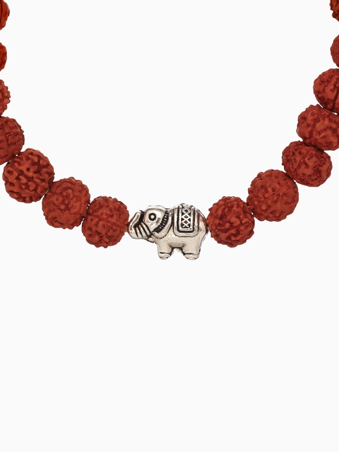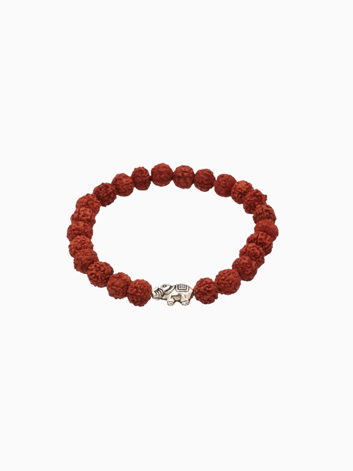 Браслет со слоником из рудракши — не просто украшение, а талисман с историей. Его длина 18 см подходит для большинства женских запястий, а красный оттенок бусин добавляет лёгкий акцент без излишеств. Слон — символ мудрости и защиты в индийской традиции — встречается здесь как миниатюрная металлическая вставка, вплетённая в натуральную основу.