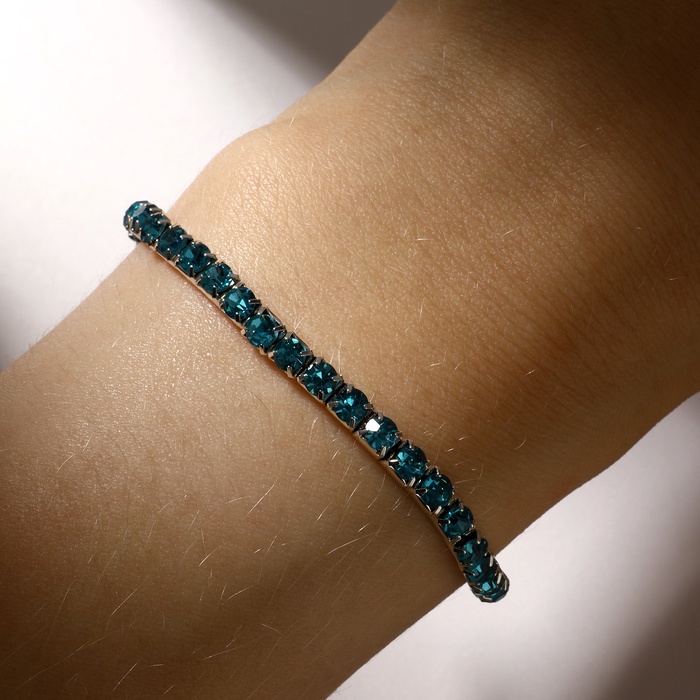 Браслет со стразами «Лёд» 1 ряд, цвет голубой в серебре, 4 мм, d=7 см — Характеристики