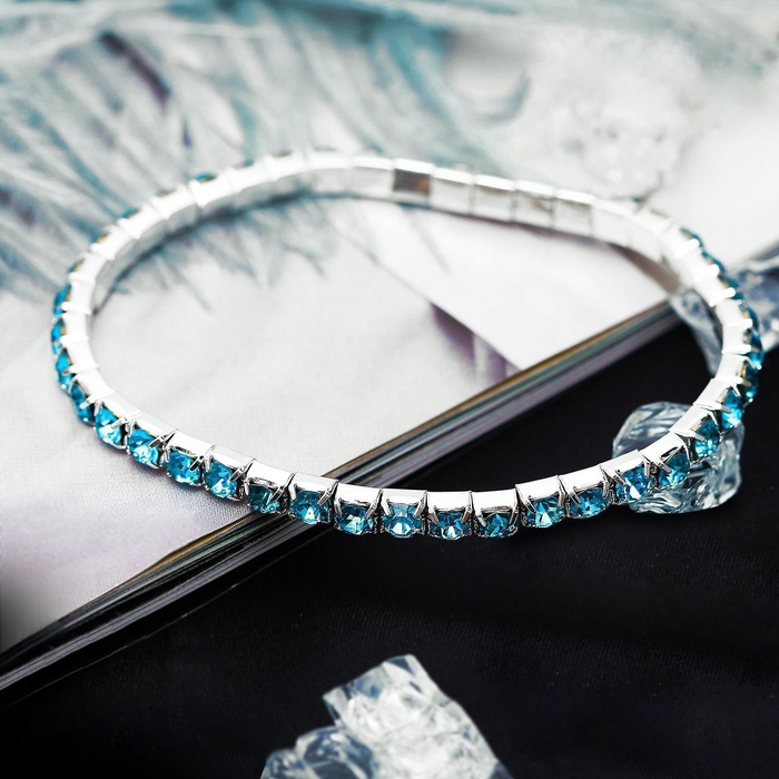 Браслет со стразами «Лёд» 1 ряд, цвет голубой в серебре, 4 мм, d=7 см