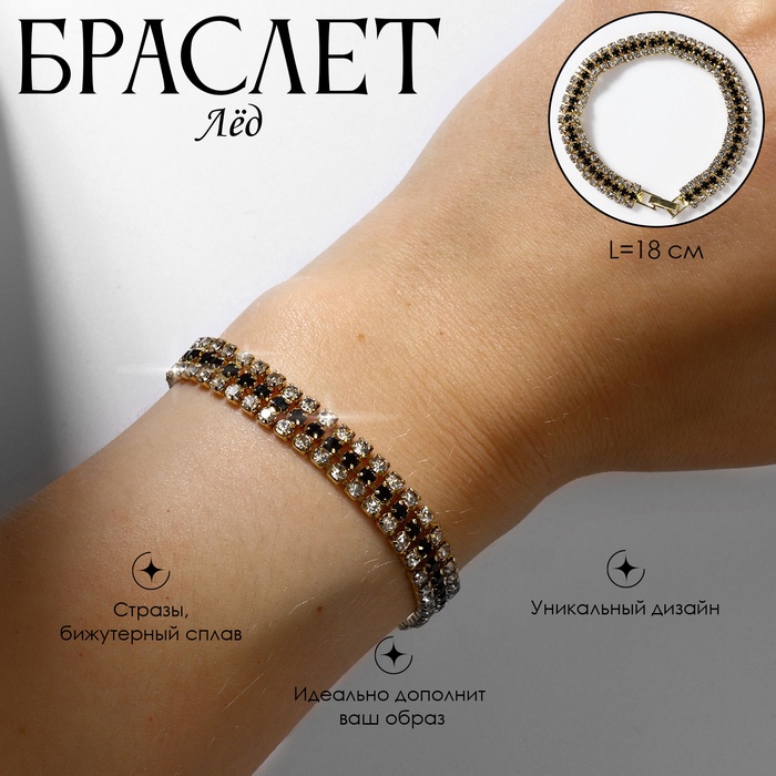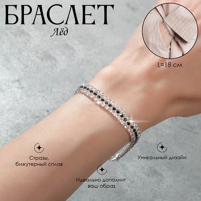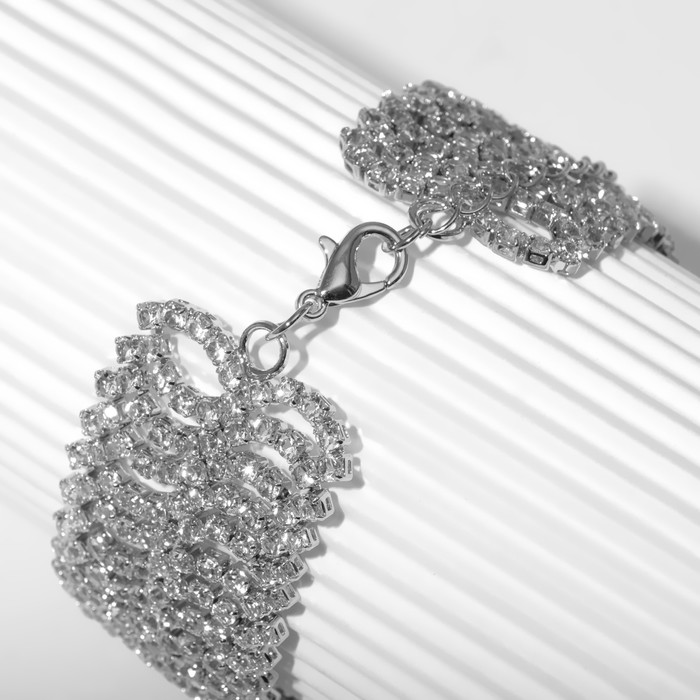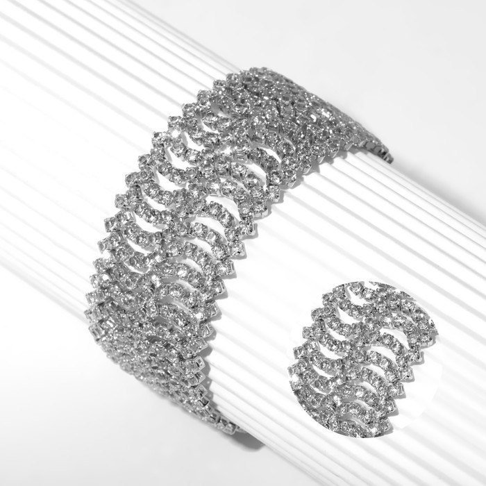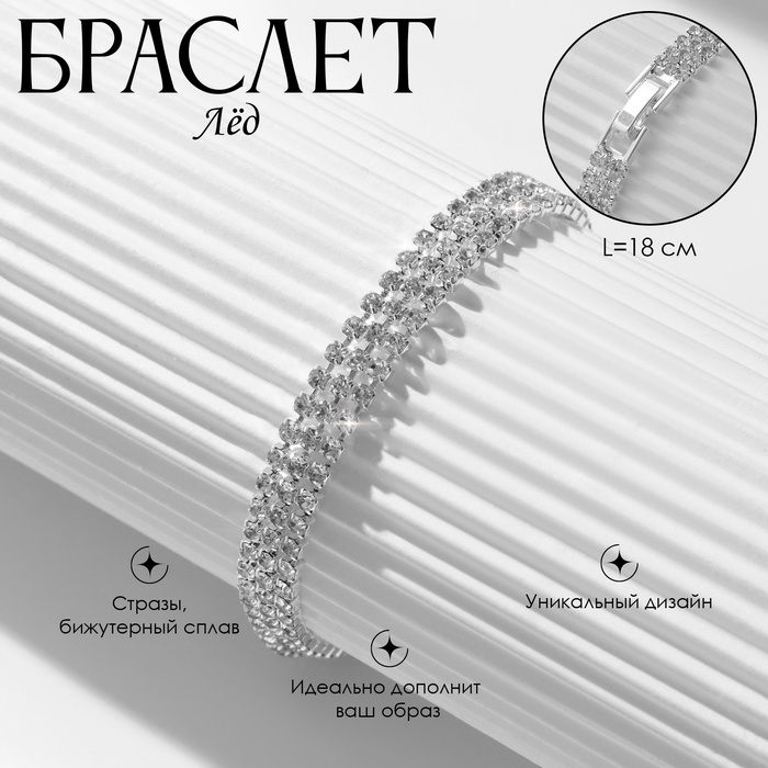 Браслет со стразами «Лёд» волны, цвет белый в серебре, 17,5 размер — Характеристики