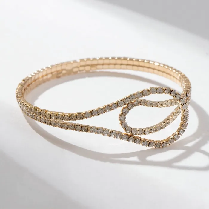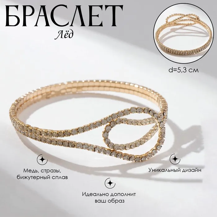 Браслет со стразами «Лёд» волны, цвет белый в золоте — Характеристики