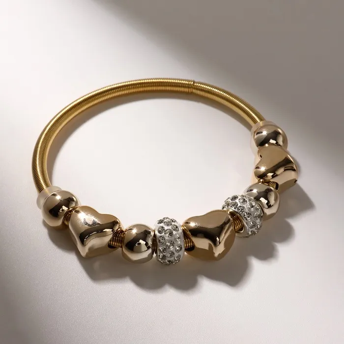 Браслет со стразами «Марджери» сердце, белый в золоте, d=6.5 см — Характеристики