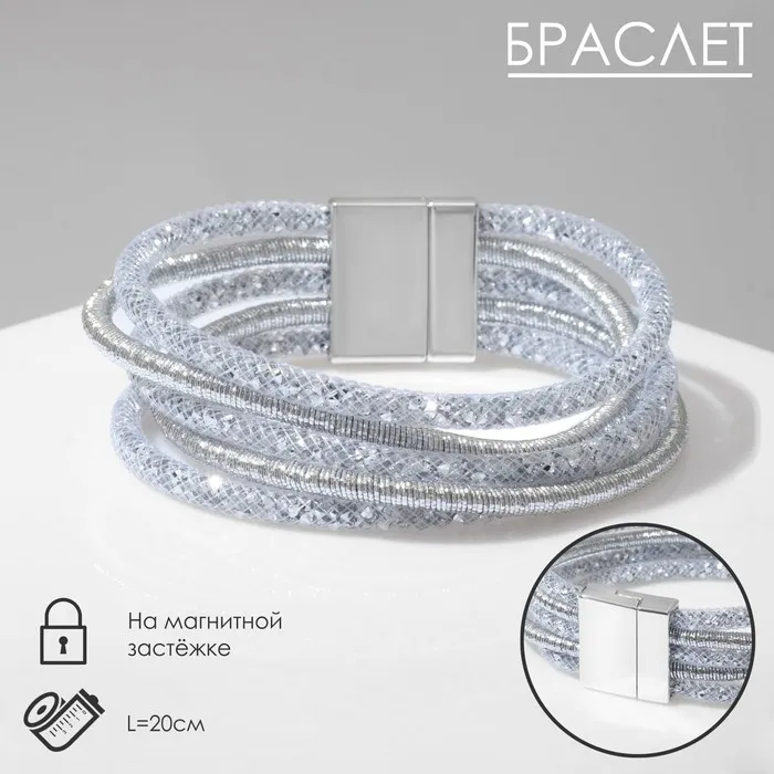 Браслет со стразами «На магните» со стразами, цвет серый в серебре, 20 см — Характеристики