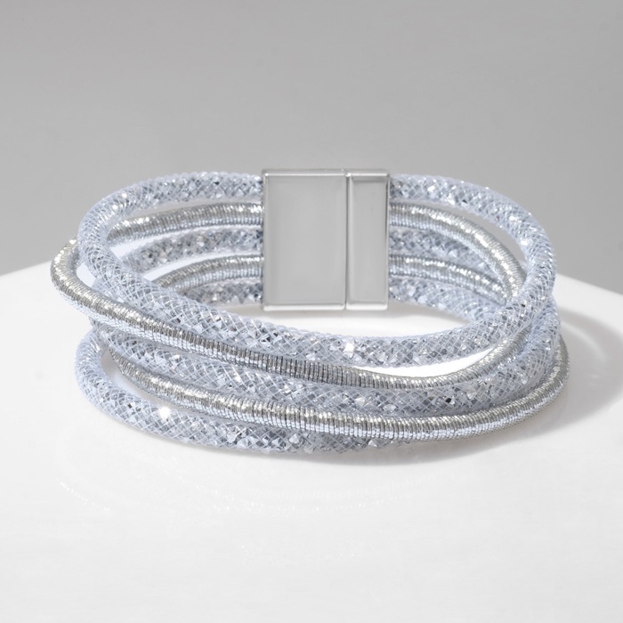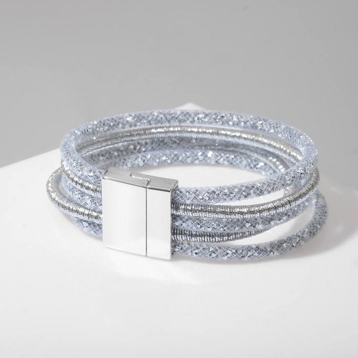 Браслет со стразами «На магните» со стразами, цвет серый в серебре, 20 см