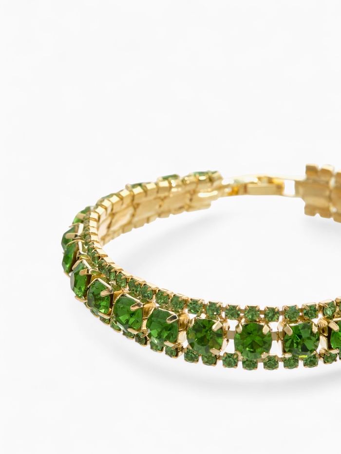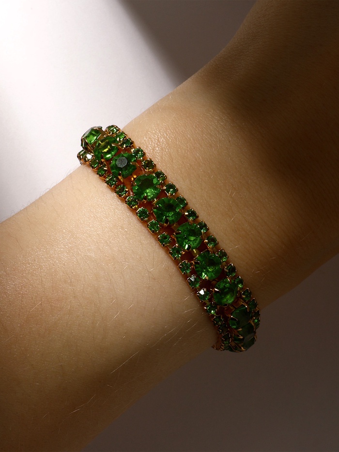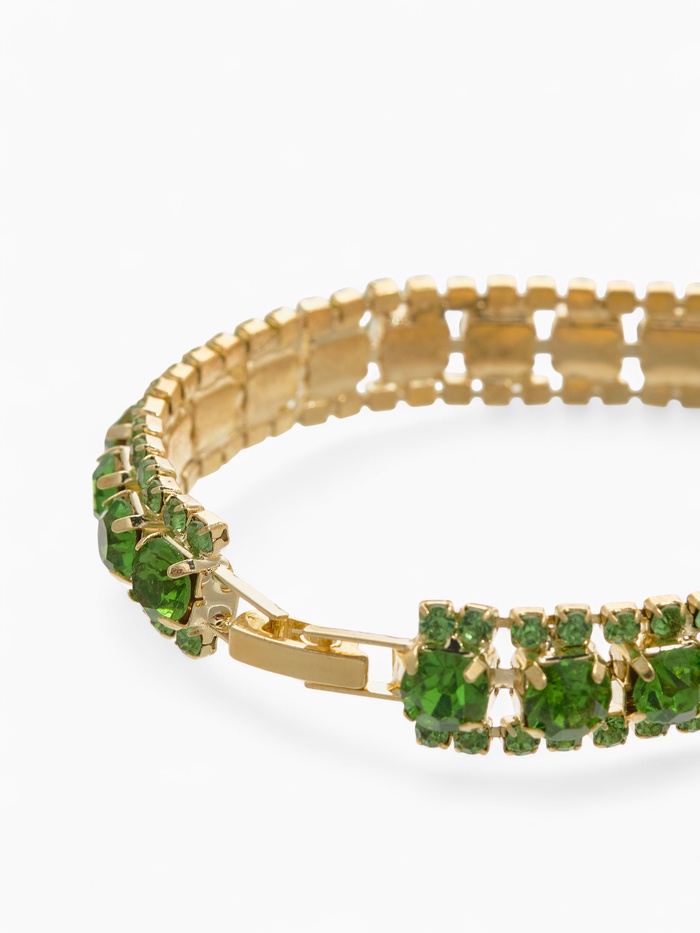 Браслет со стразами «Северное сияние» змейка, светло-зелёный в золоте, L=18 см — Характеристики