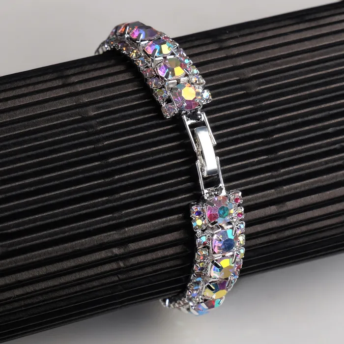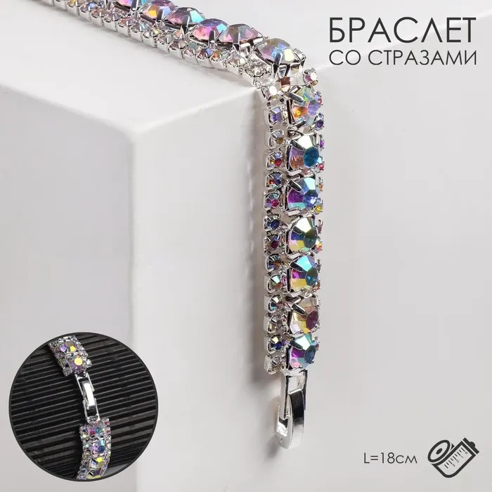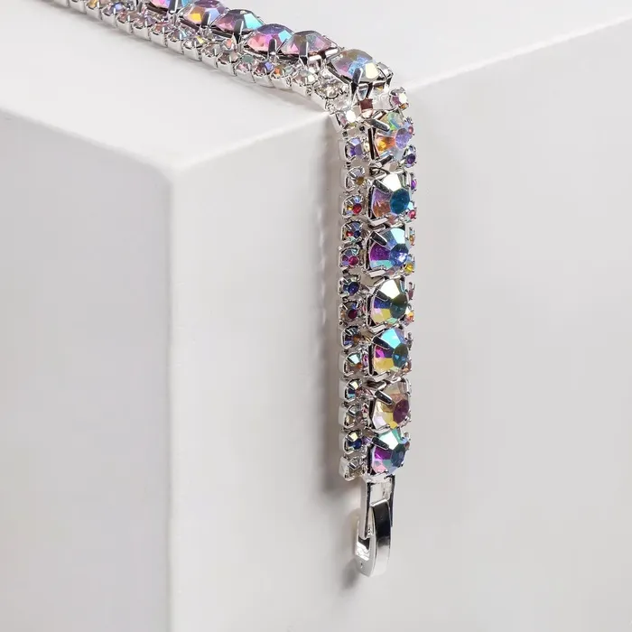Браслет со стразами «Северное сияние» змейка, цвет радужный в серебре, L=18 см — Характеристики