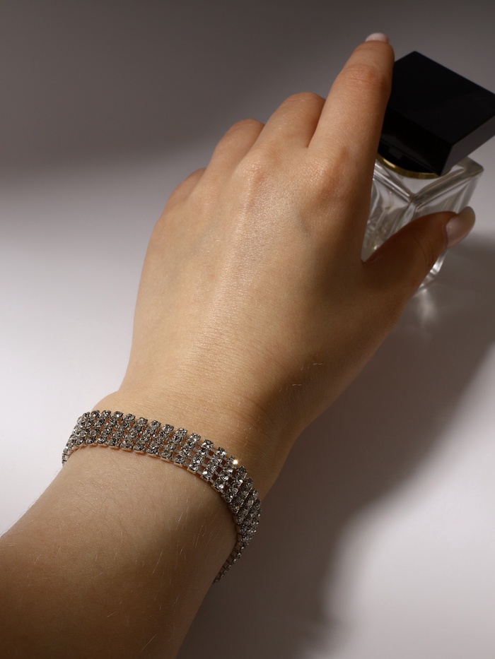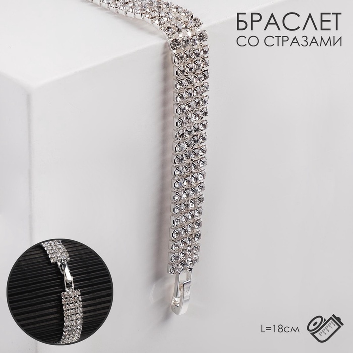 Браслет со стразами «Сияй» четыре ряда, цвет белый в серебре, 18 см — Характеристики