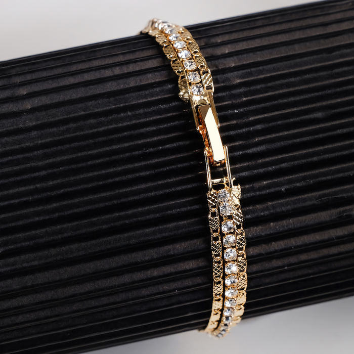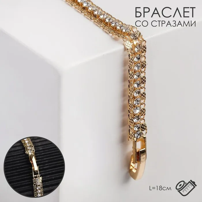 Браслет со стразами «Сияй» нить пластинами, цвет белый в розовом золоте, L=18 см — Характеристики