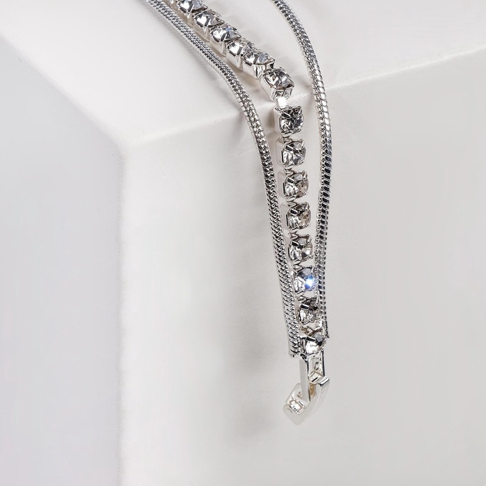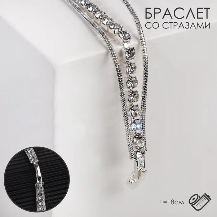 Браслет со стразами «Сияй» нить с полоской, цвет белый в серебре, 18 см — Характеристики