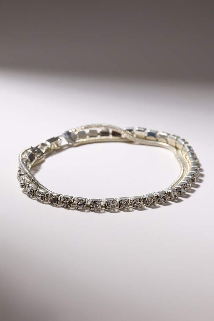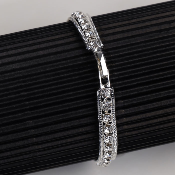 Браслет со стразами «Сияй» нить с полоской, цвет белый в серебре, 18 см
