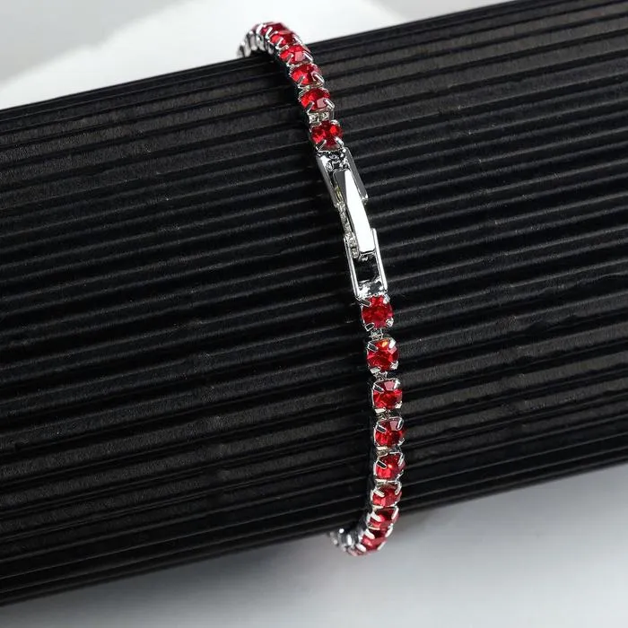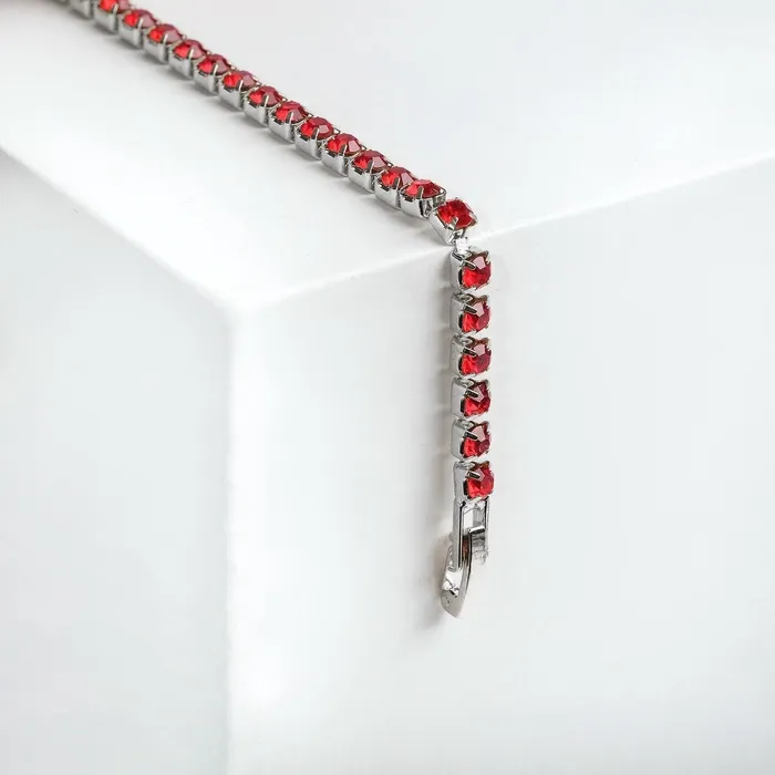 Браслет со стразами «Сияй» тонкая нить, цвет красный в серебре, 18 см — Характеристики