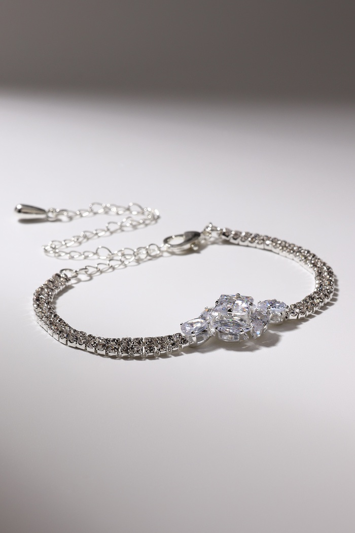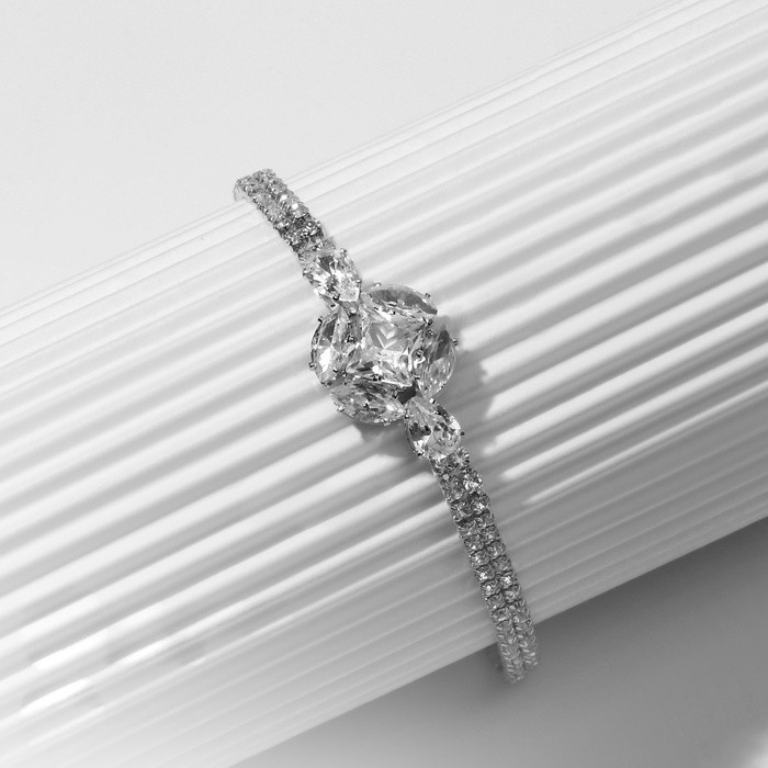 Браслет со стразами «Циркон» изыск, круг, цвет белый в серебре, L=15 см — Характеристики