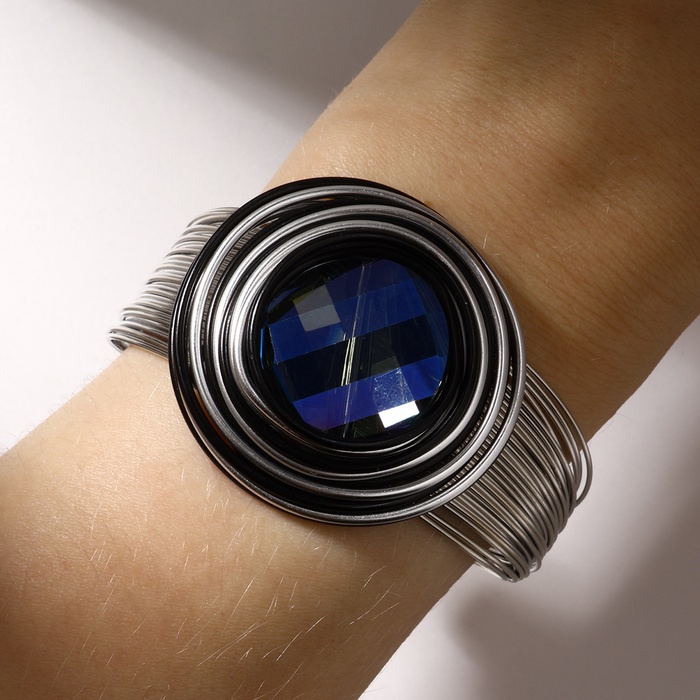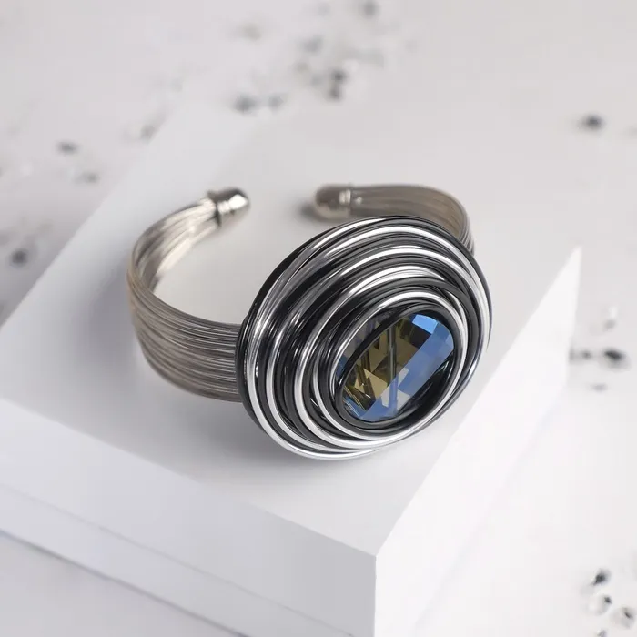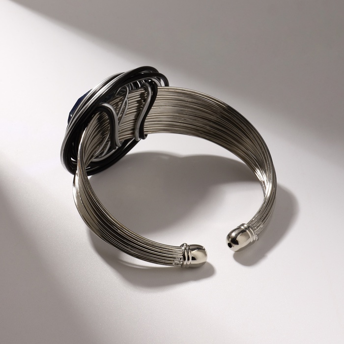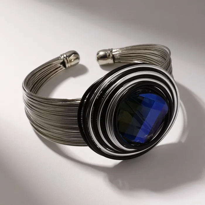 Браслет со стразами «Валькирия» камень в металле, цвет синий в чернёном серебре, безразмерное, d=6,5 см — Характеристики