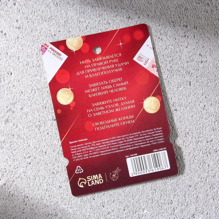 Браслет-талисман «Стану богаче», красная нить, длина 24 см — Характеристики
