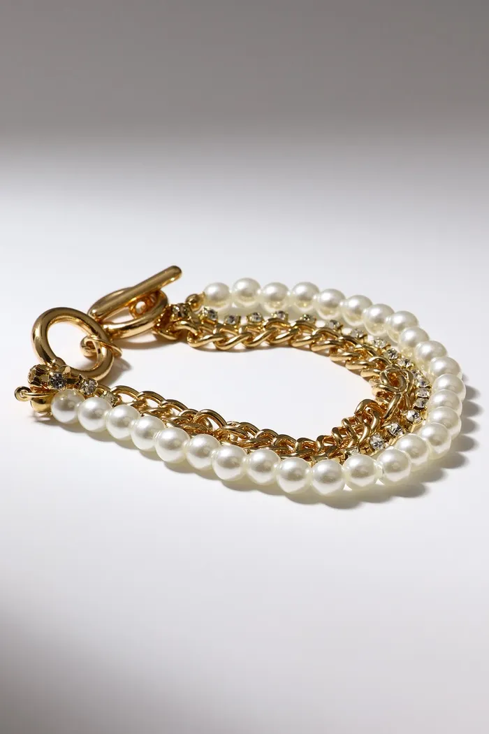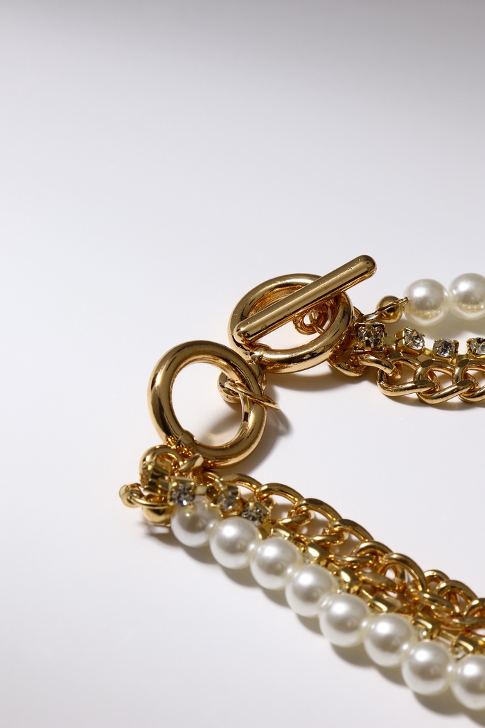 Браслет «Цепь» с тоглом, жемчуг шар №4, белый в золоте, L=16 см — Характеристики