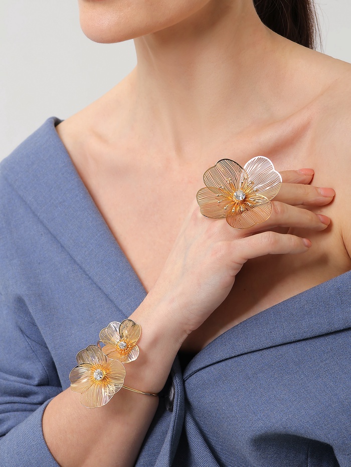 Откройте для себя элегантность и утонченность с браслетом, который станет изюминкой вашего образа. Этот золотистый аксессуар, украшенный искусственным фианитом в форме цветка, привлекает внимание и добавляет нотку роскоши к любому наряду. Его длина в 4,5 см идеально подходит для женщин, стремящихся подчеркнуть свою индивидуальность и стиль.