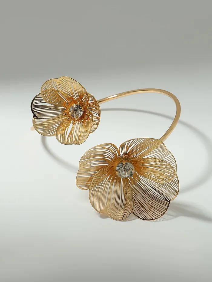 Откройте для себя элегантность и утонченность с браслетом, который станет изюминкой вашего образа. Этот золотистый аксессуар, украшенный искусственным фианитом в форме цветка, привлекает внимание и добавляет нотку роскоши к любому наряду. Его длина в 4,5 см идеально подходит для женщин, стремящихся подчеркнуть свою индивидуальность и стиль.