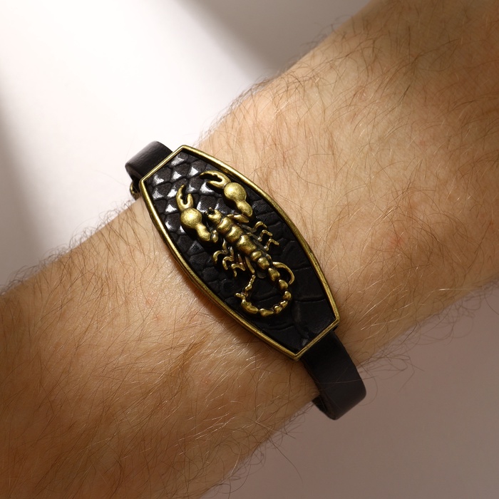 Браслет унисекс «Атлант» с изображением скорпиона — это символ силы, страсти и внутренней энергии, объединённый в стильном и современном дизайне. Его насыщенный чёрный цвет с чернёным золотом создаёт эффектный контраст, подчёркивая индивидуальность владельца и придавая образу особую харизму. Длина 22 см идеально подходит для комфортного ношения, а Т-образная застёжка обеспечивает надёжную фиксацию и простоту использования.
