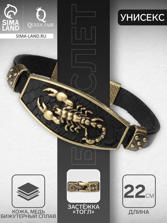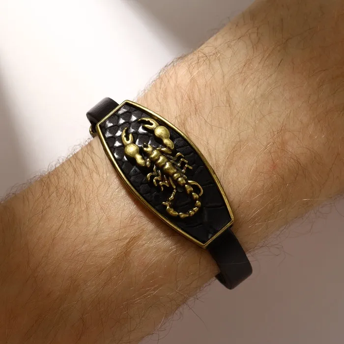 Изготовленный из искусственной кожи с металлическими вставками, этот браслет сочетает в себе прочность и элегантность. Тематика скорпиона — знак зодиака, символизирующий страсть, трансформацию и внутреннюю силу — делает аксессуар не только модным украшением, но и амулетом, приносящим удачу и энергию. Его универсальный дизайн отлично дополнит как повседневный стиль, так и более яркие образы для особых случаев.