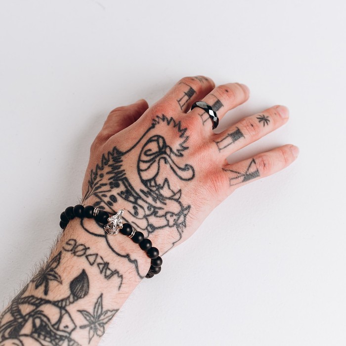 Браслет из бусин с изображением волка воплощает силу, мудрость и независимость, делая его ярким акцентом в любом образе. Чёрный силиконовый материал обеспечивает комфортную посадку и долговечность, а его универсальный дизайн подходит как для мужчин, так и для женщин, подчеркивая индивидуальность владельца.