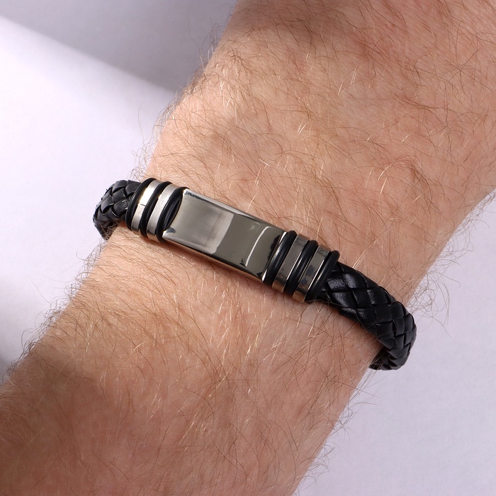 Этот браслет объединяет в себе силу и стиль, создавая уникальный аксессуар для тех, кто ценит индивидуальность и внутреннюю мощь. Его насыщенный чёрный цвет с серебряными акцентами подчёркивает современный дизайн и универсальность, позволяя носить его как на деловые встречи, так и в повседневной жизни. Длина 22 см обеспечивает комфортное облегание, а складная застёжка гарантирует надёжную фиксацию без лишних усилий.