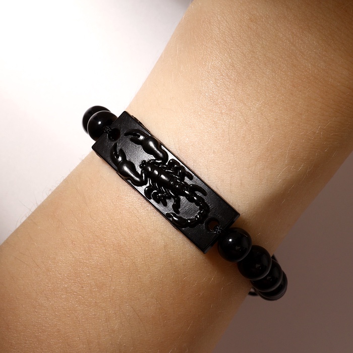 Дизайн основывается на гармоничном сочетании строгого черного цвета бусин диаметром 8 мм и металлических вставок, которые дополняют образ загадочного Скорпиона — знака зодиака, символизирующего решительность и внутреннюю силу. Такой аксессуар станет превосходным выбором как мужской, так и женской аудитории, подчёркивая характер и создавая атмосферу загадочности.