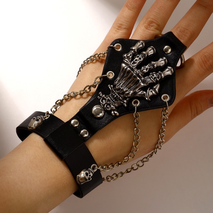Браслет унисекс «Слейв» скелет, цвет чёрный с серебром, 21,5 см — Характеристики