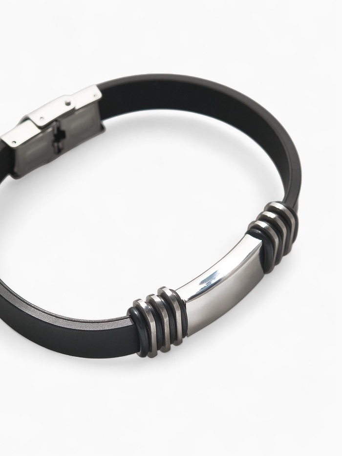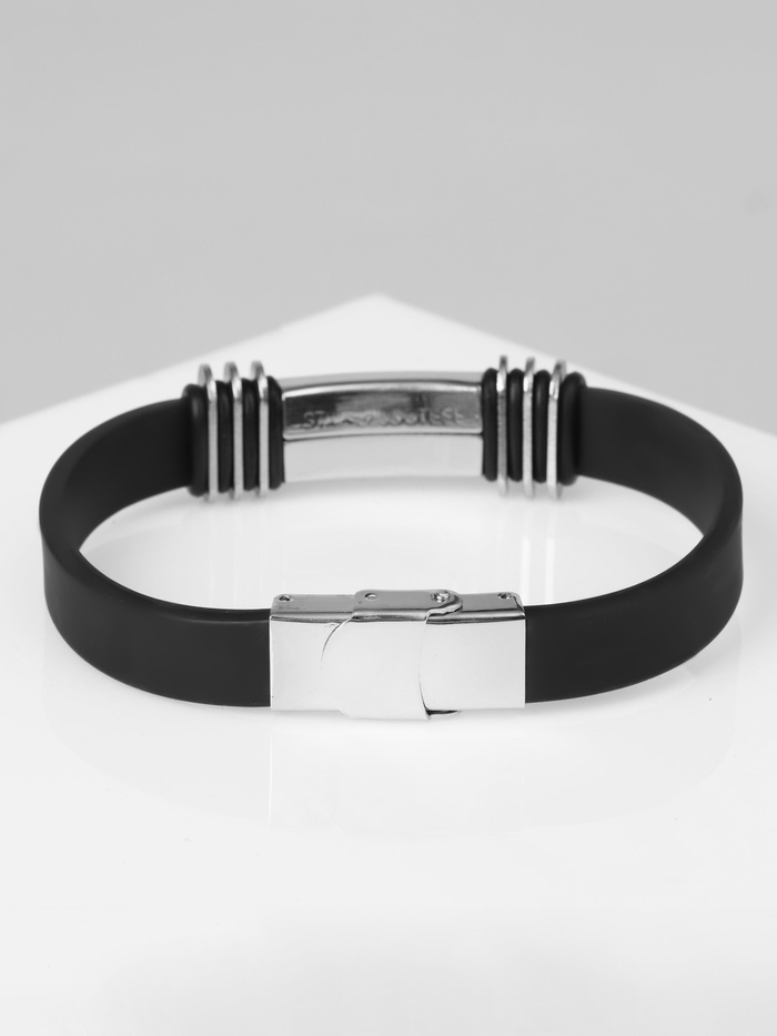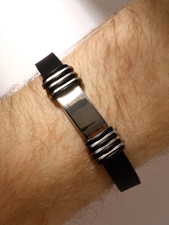Браслет унисекс «Стиль» прямоугольник с тройными вставками, цвет чёрный с серебром, 23 см — Характеристики