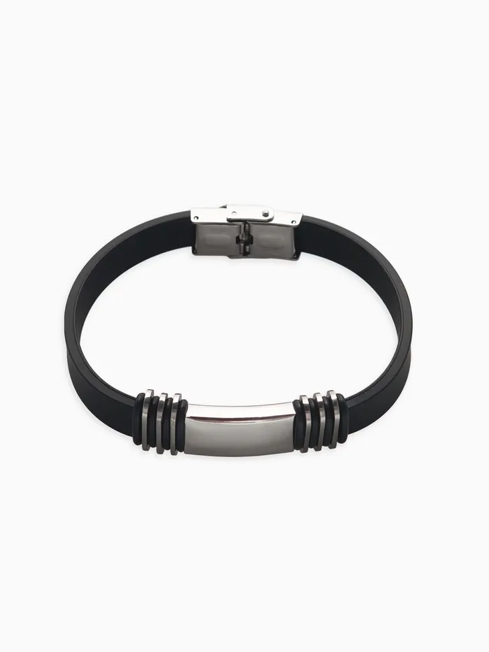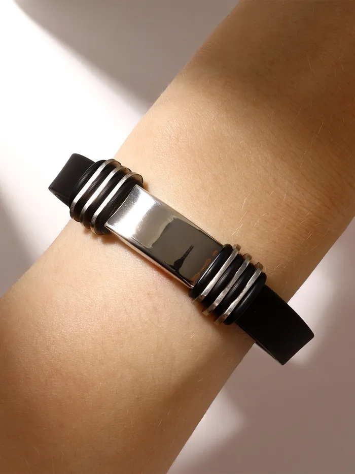Браслет унисекс «Стиль» прямоугольник с тройными вставками, цвет чёрный с серебром, 23 см — Характеристики