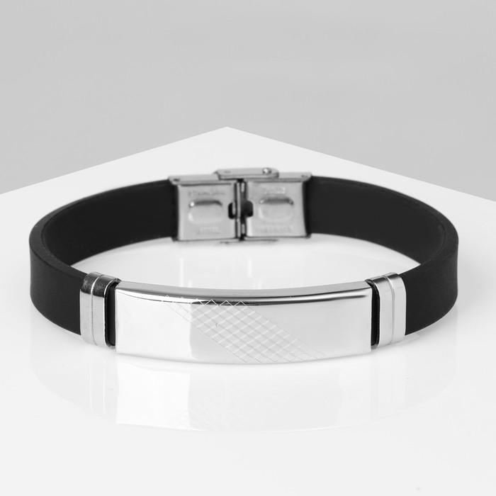 Браслет унисекс «Стиль» прямоугольник с узором, цвет чёрный с серебром, 22 см — Характеристики