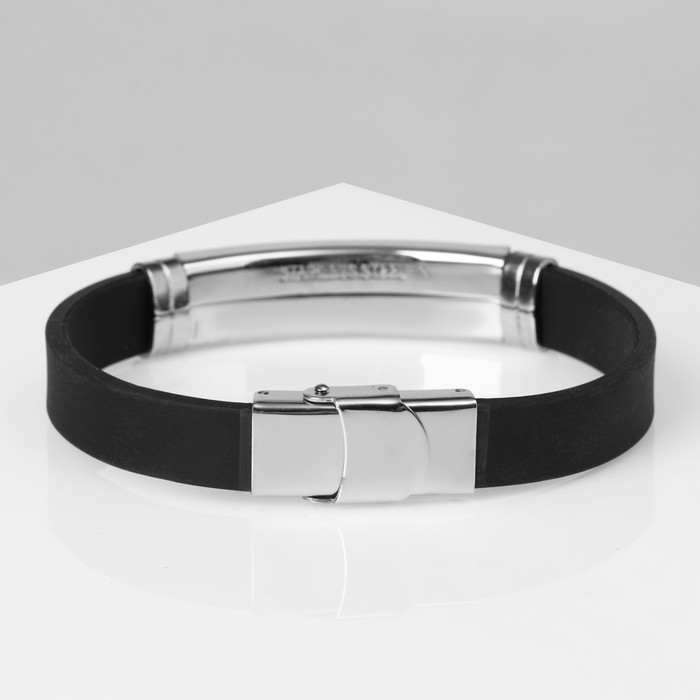 Этот унисекс браслет из каучука с металлическими вставками и узорчатым прямоугольным дизайном — универсальный аксессуар, который подойдет как мужчинам, так и женщинам. Черный цвет с серебряной фурнитурой делает его стильным дополнением к повседневным и деловым образам. Размер 22 см обеспечивает комфортную посадку на запястье, а складная застёжка (тогл) гарантирует надежное крепление.