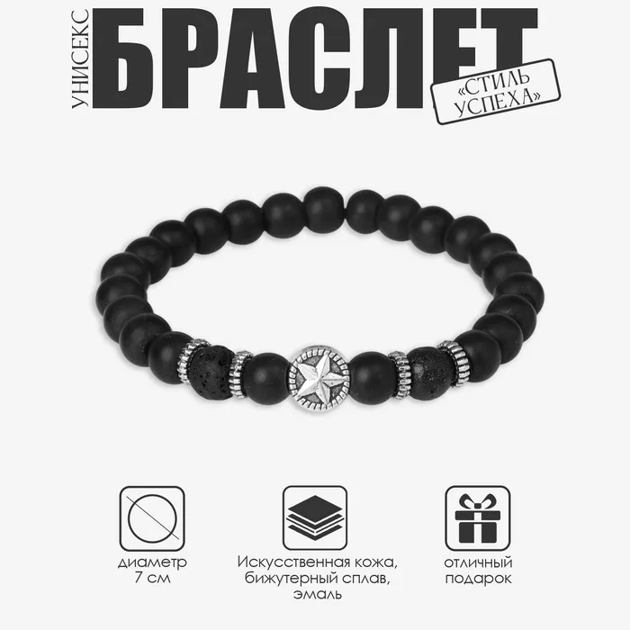 Браслет унисекс «Стиль успеха», звезда, d=7 см, чёрный с серебром — Характеристики