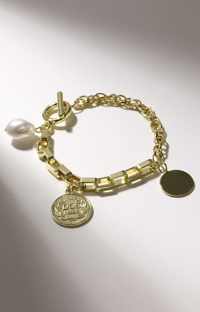 Откройте для себя элегантность и утонченность с этим замечательным браслетом, который станет идеальным дополнением к вашему образу. Изготовленный из качественного металла и украшенный белым жемчугом в золотой обрамлении, он длиной 20 см придаст вашему стилю изысканный шарм и неповторимость.