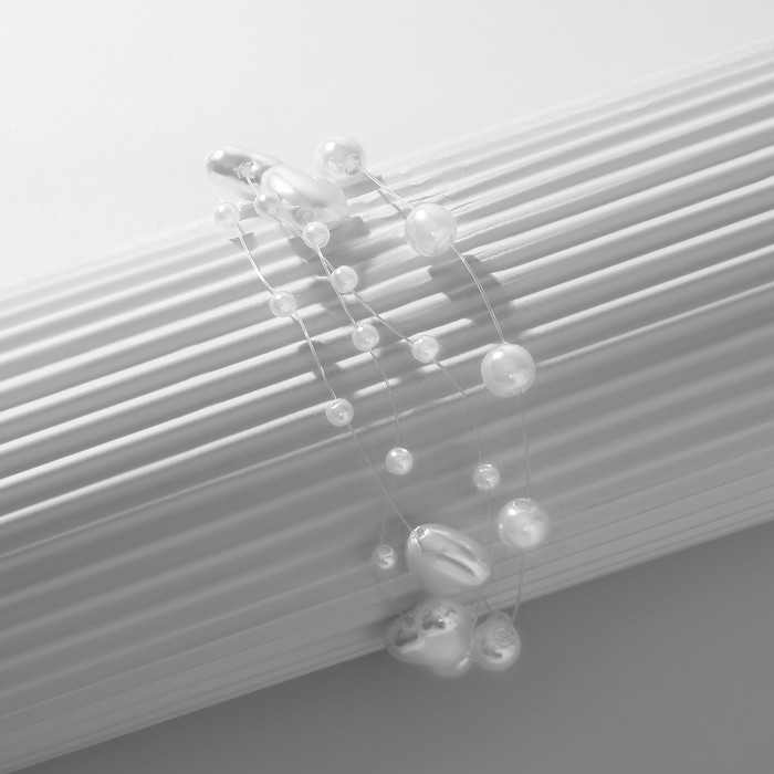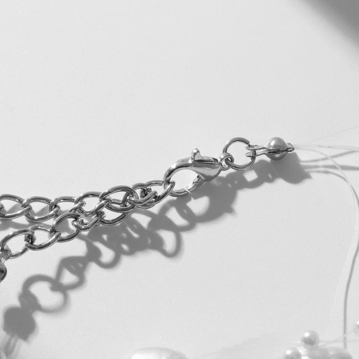 Браслет жемчуг «На леске» сердце, бусины №4, 6, цвет белый в серебре, 16 см — Характеристики