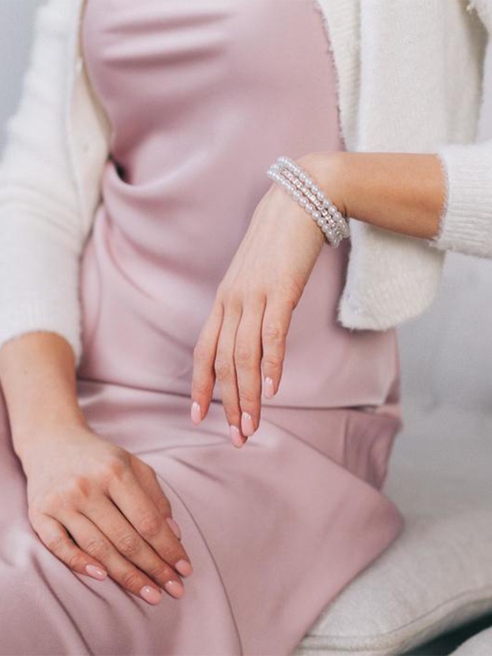 - Жемчужные бусины и стразы: создают эффект благородного сияния и подчёркивают женственность образа.