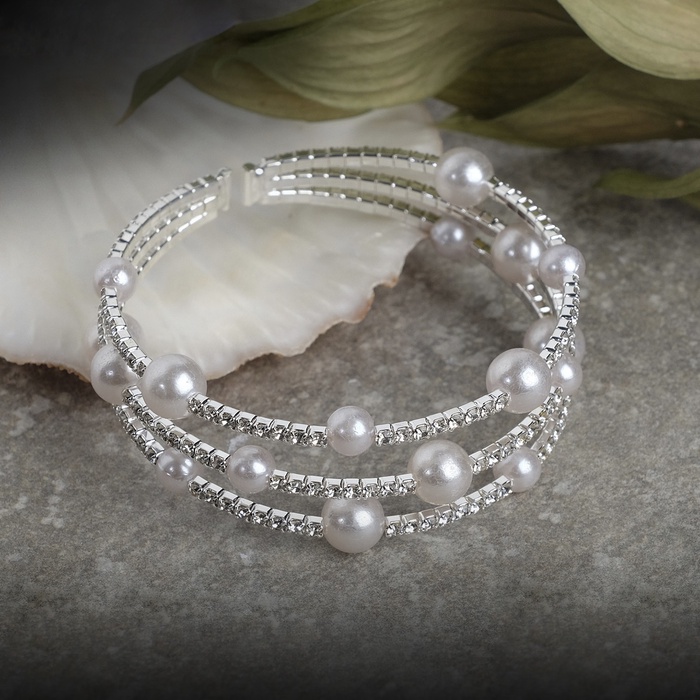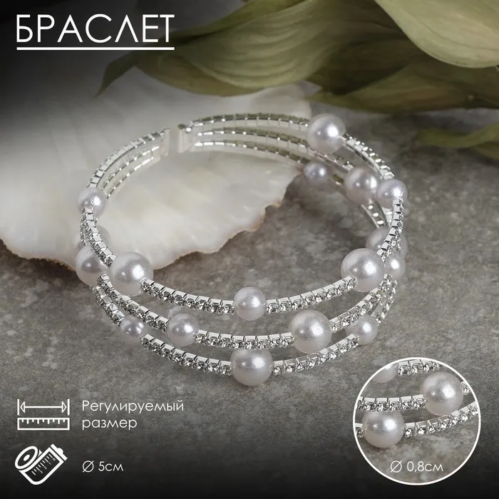 Браслет жемчуг «Пружинка» сияние,шар № 8 , цвет белый в серебре, L=5см — Характеристики
