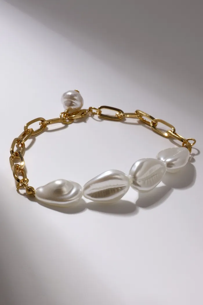 Браслет жемчуг «Ракушка» жемчужная бусина, цвет белый в золоте, L=18 см — Характеристики
