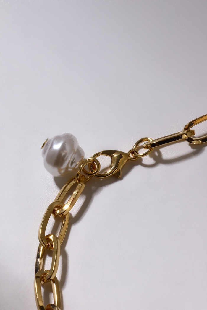 Погрузитесь в мир элегантности с изысканным браслетом, который станет неотъемлемой частью вашего образа. Этот браслет с жемчужной бусиной, выполненный в белом цвете с золотой фурнитурой, длиной 18 см, добавит нотку роскоши и утонченности в любой наряд.