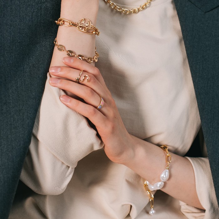 - Элегантный дизайн: сочетание белого жемчуга и золотой фурнитуры создает эффектный контраст, который привлекает внимание.