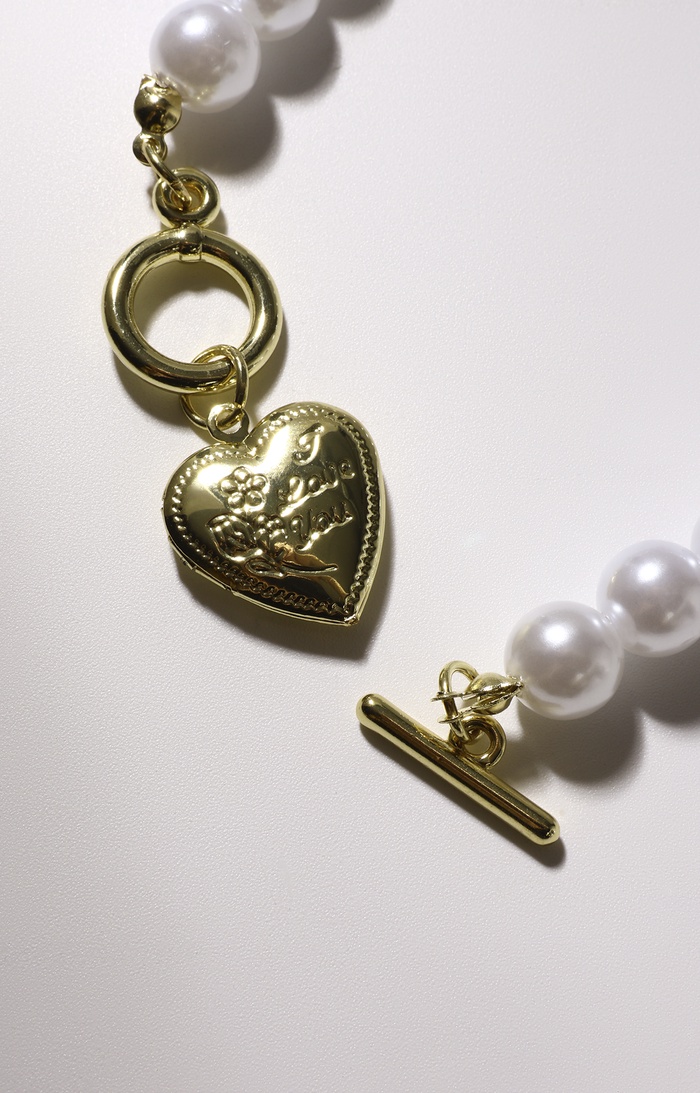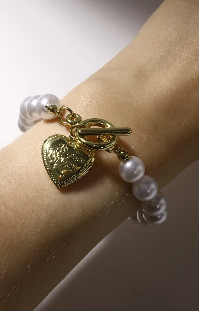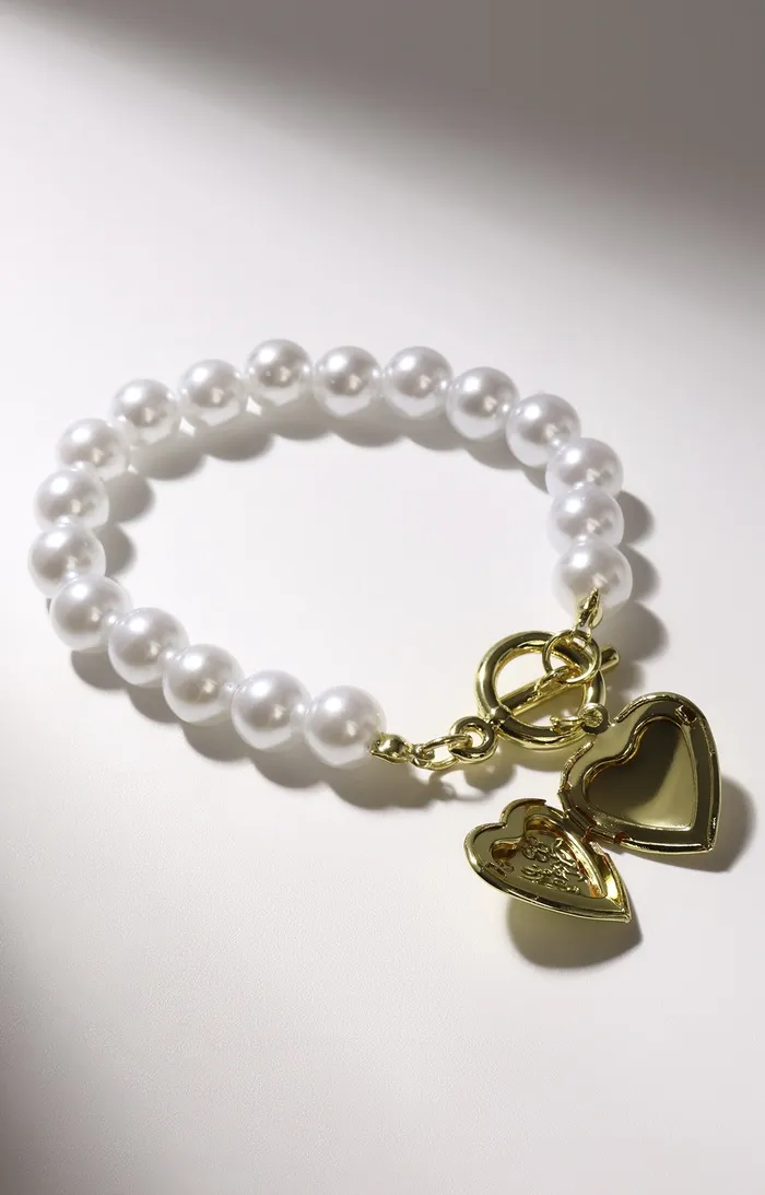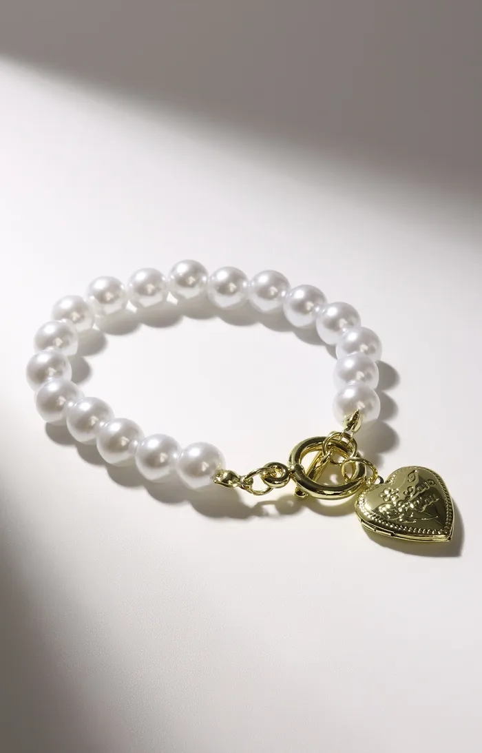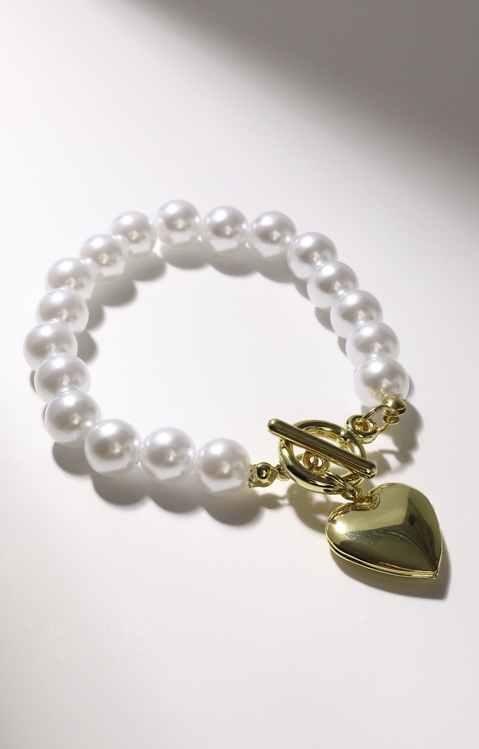 Браслет жемчуг «Сердечко» для фото, шар №10, белый в золоте, L=21 см — Характеристики