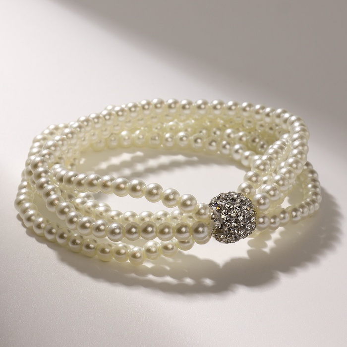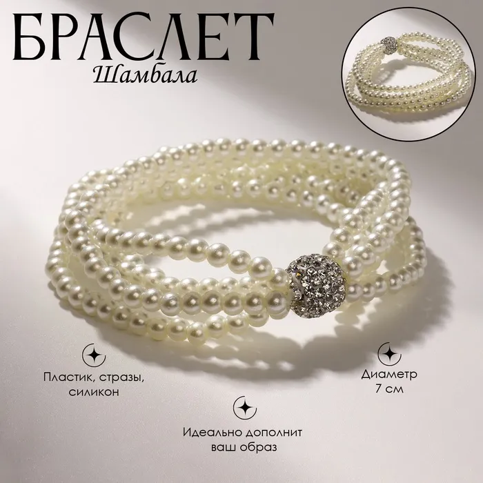 Браслет жемчуг «Шамбала», 5 нитей, бусины 4, цвет белый — Характеристики