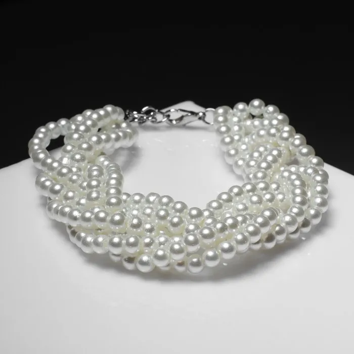 Браслет жемчуг «Жгут», 6 нитей, бусины №4, цвет молочный в серебре — Характеристики