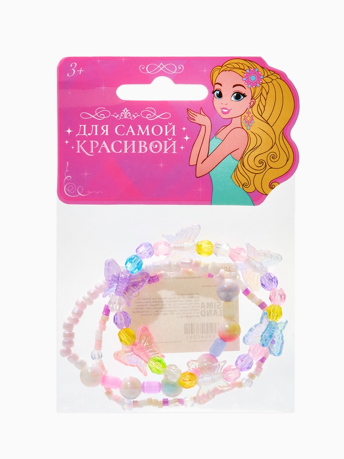 Браслеты детские «Выбражулька. Бабочки и бусины», набор 3 шт. цветной — Характеристики