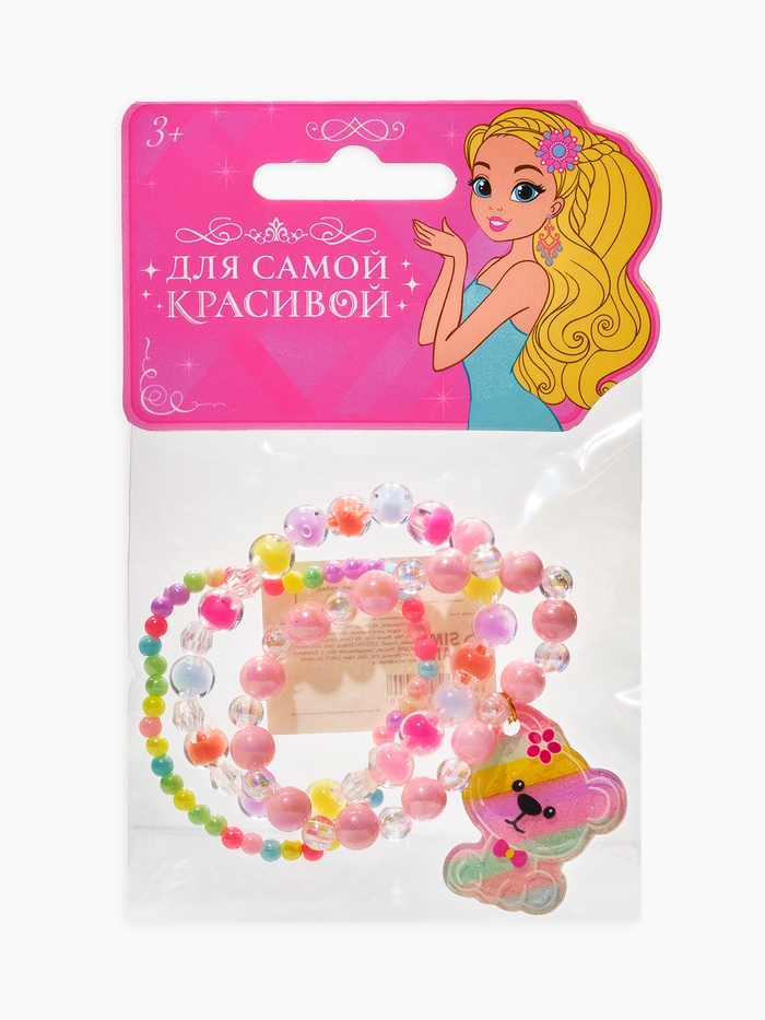 Браслеты детские «Выбражулька. Мишка и бусинки», набор 3 шт. цветной — Характеристики