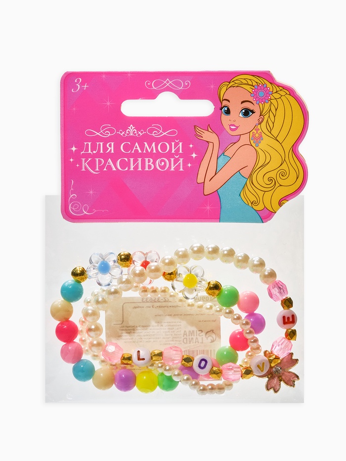 Браслеты детские «Выбражулька. Цветок и бусинки», набор 3 шт. бусины, цветной — Характеристики