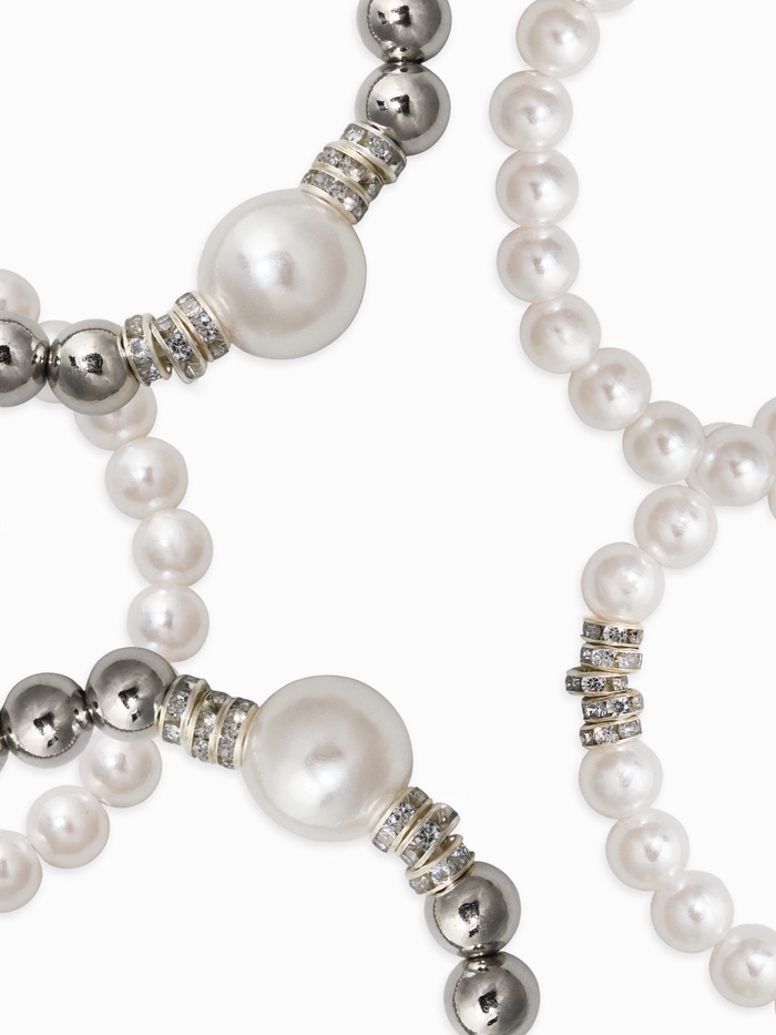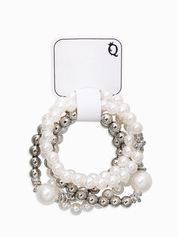 Изящный набор из пяти белоснежных браслетов с эффектом жемчуга привнесёт особую гармонию в ваш образ. Созданный специально для поклонниц натурального перламутрового блеска, этот комплект позволит подчеркнуть индивидуальность и создать эффект многослойности.