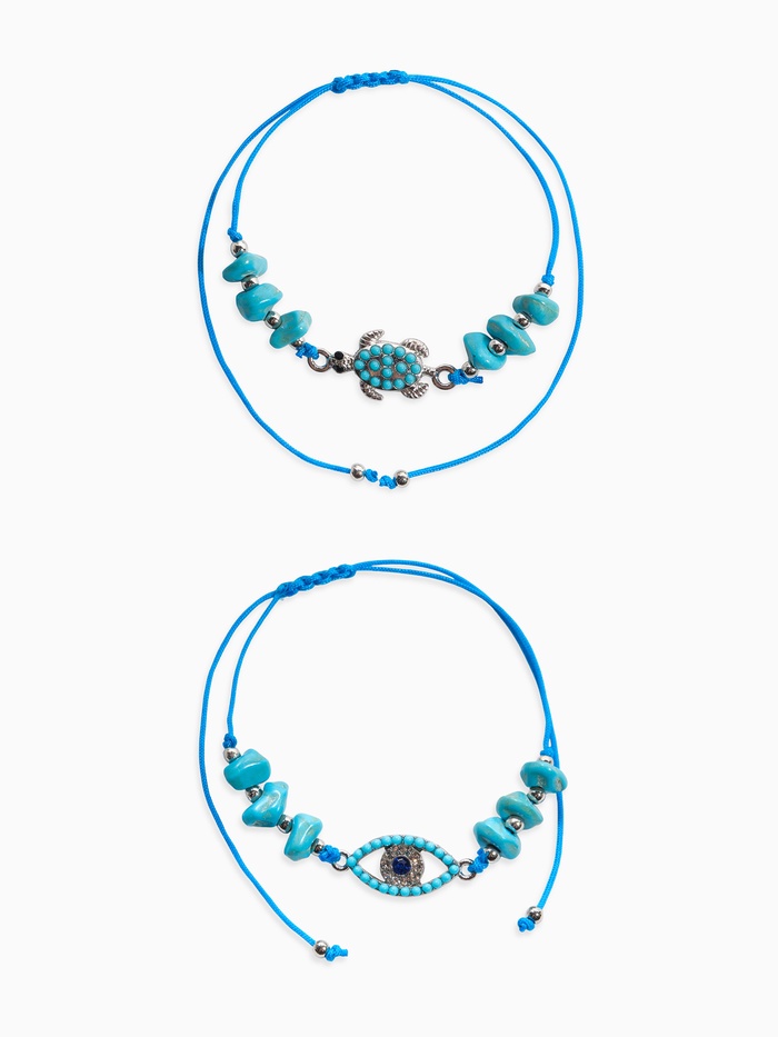 Браслеты-обереги «Нить желаний» набор 2 шт. камни, голубые — Характеристики
