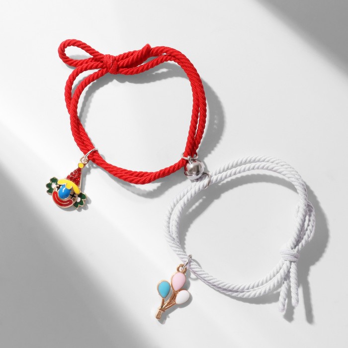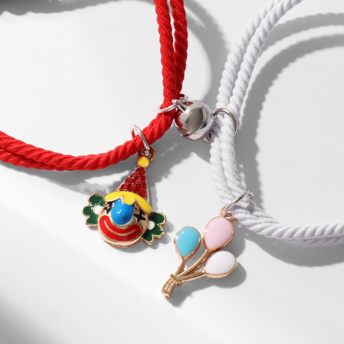 Браслеты парные «Неразлучники» ассоль, клоун и шары, бело-красные, d=7 см — Характеристики